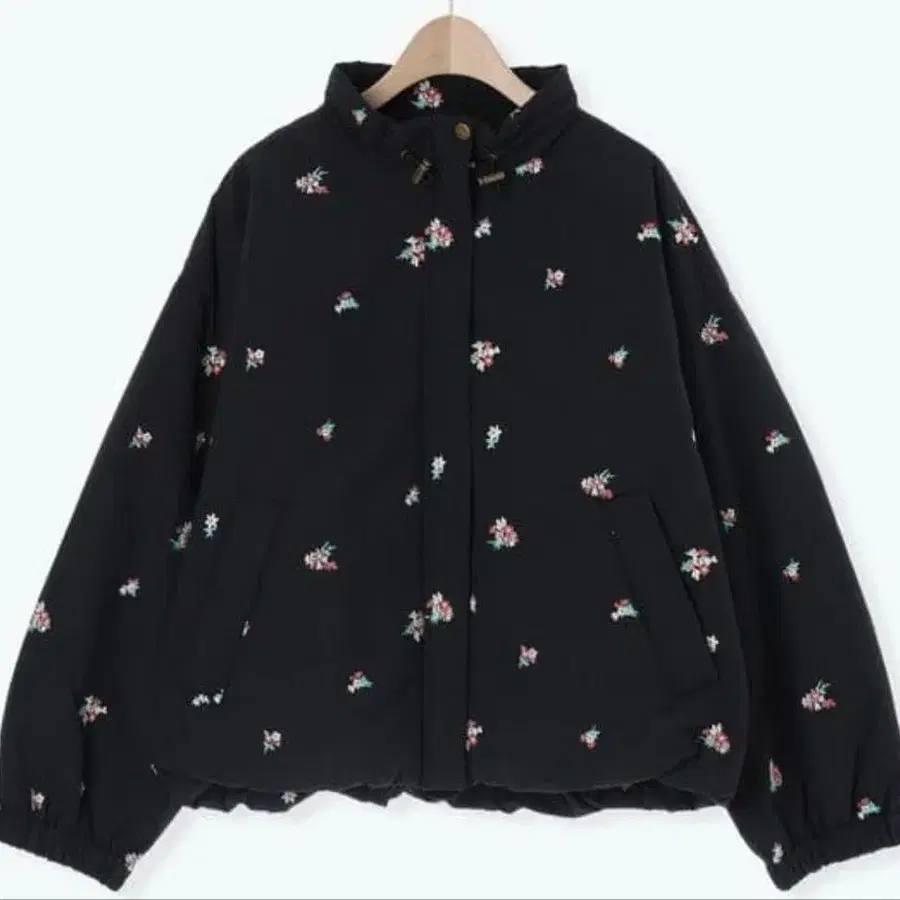 사만사 모스모스 작은 꽃 총 자수 패딩 자켓 블랙