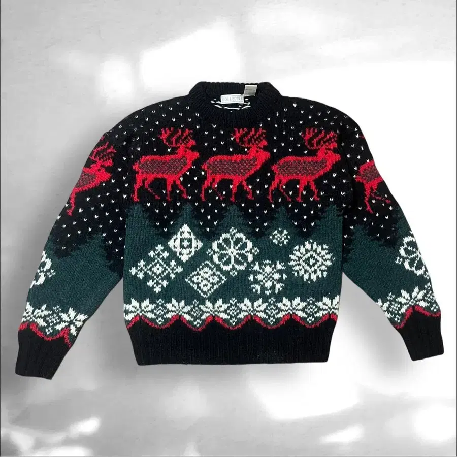 • 80s 빈티지 니트 레어 3L 고성 패턴 디자인 크리스마스 스웨터