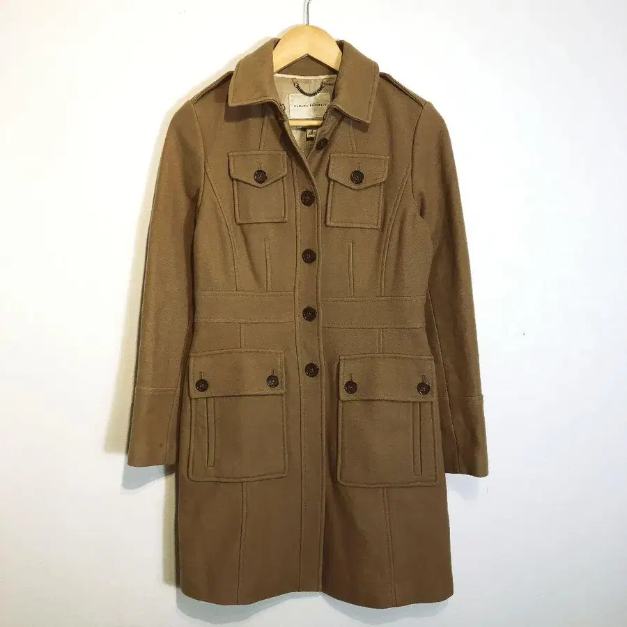 자동 번역되었어요. 원문보기베이지색 롱 코트, 포켓 부착으로 기능적입니다.
