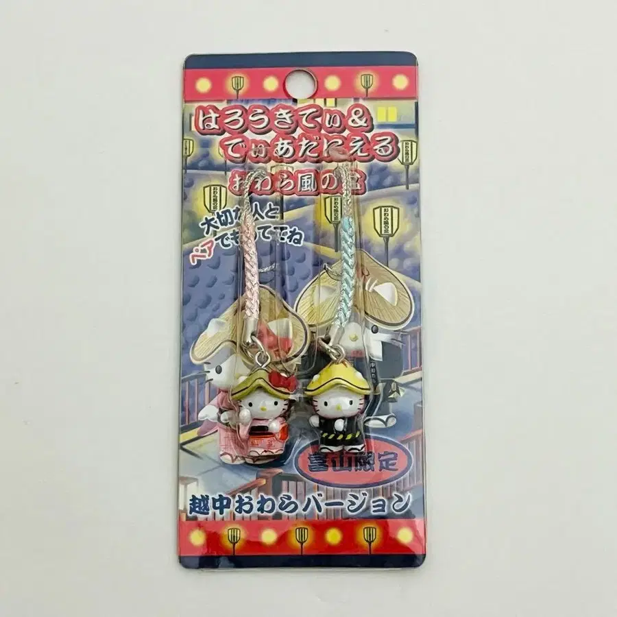 일본풍 의상을 입은 헬로키티 스트랩 2개 세트.