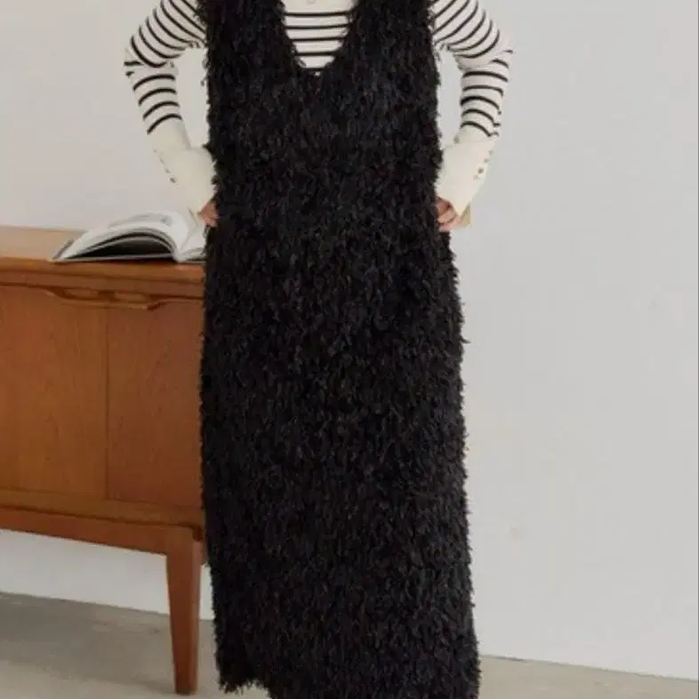 titivate/페더 프린지 원피스/보송보송/블랙/M