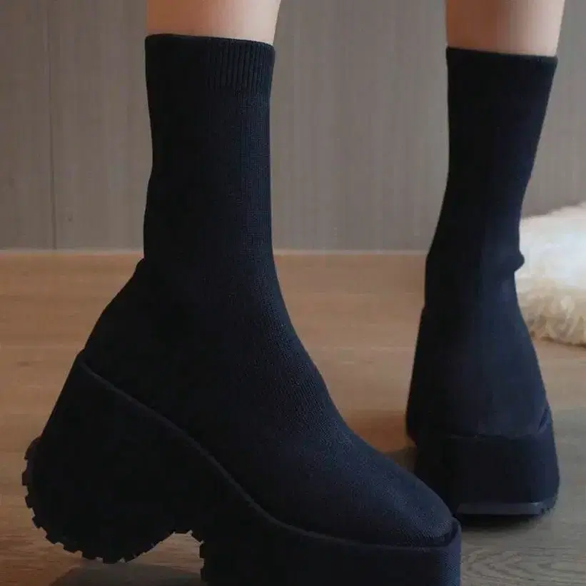 스트레치 소재의 블랙 삭스 부츠, 통굽 디자인으로 스타일리시한 인상. - 색상: 블랙 - 디자인: 삭스 부츠 - 밑창 타입: 통굽 밑창 - 스타일: 스트레치 소재 방문해 주셔서 감사합니다.