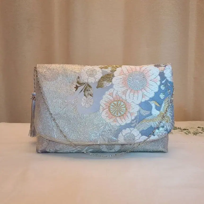 자동 번역되었어요. 원문보기#크리스마스#신년#성인식 ※ 일본풍 꽃 무늬 실버 실크 기모노 오비의 2ways 클러치백