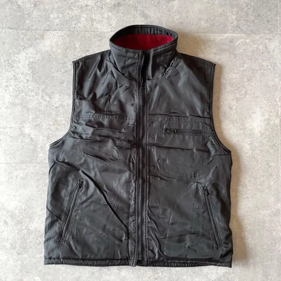 블랙과 레드의 플리스 리버서블 사양으로, 실용성이 높은 남성용 베스트.