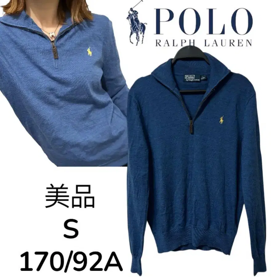 새상품급 폴로 랄프로렌 하프 지퍼 니트 톤 다운 블루 계열 남성용 S