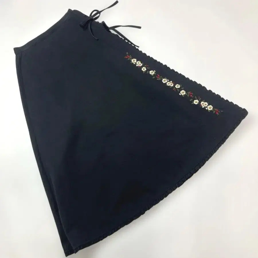 핑크하우스 블랙 꽃 자수 사용 랩 스커트