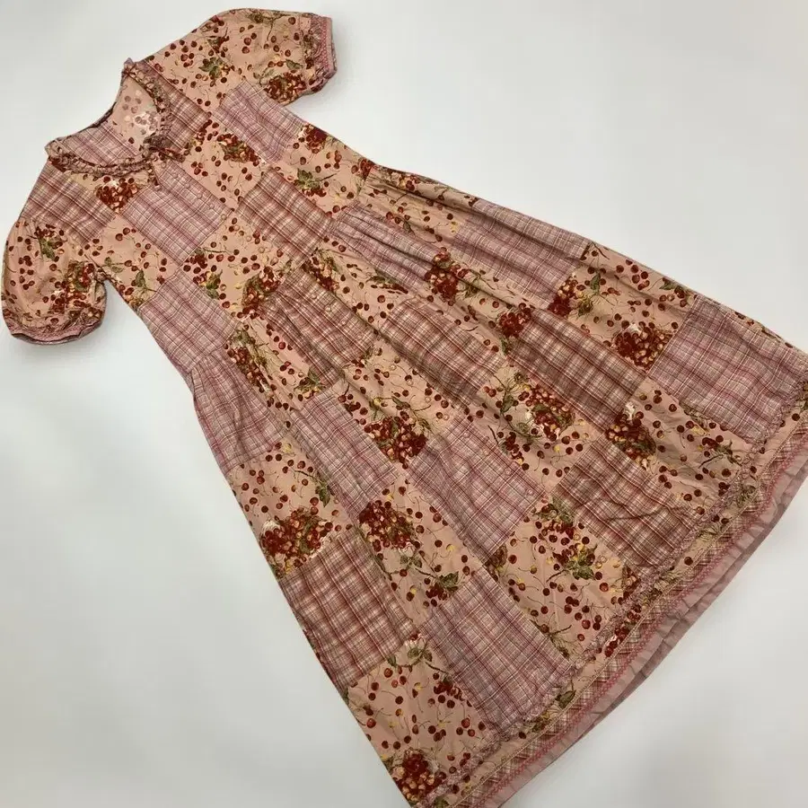 체리 패턴이나 체크 패치워크 원피스입니다.