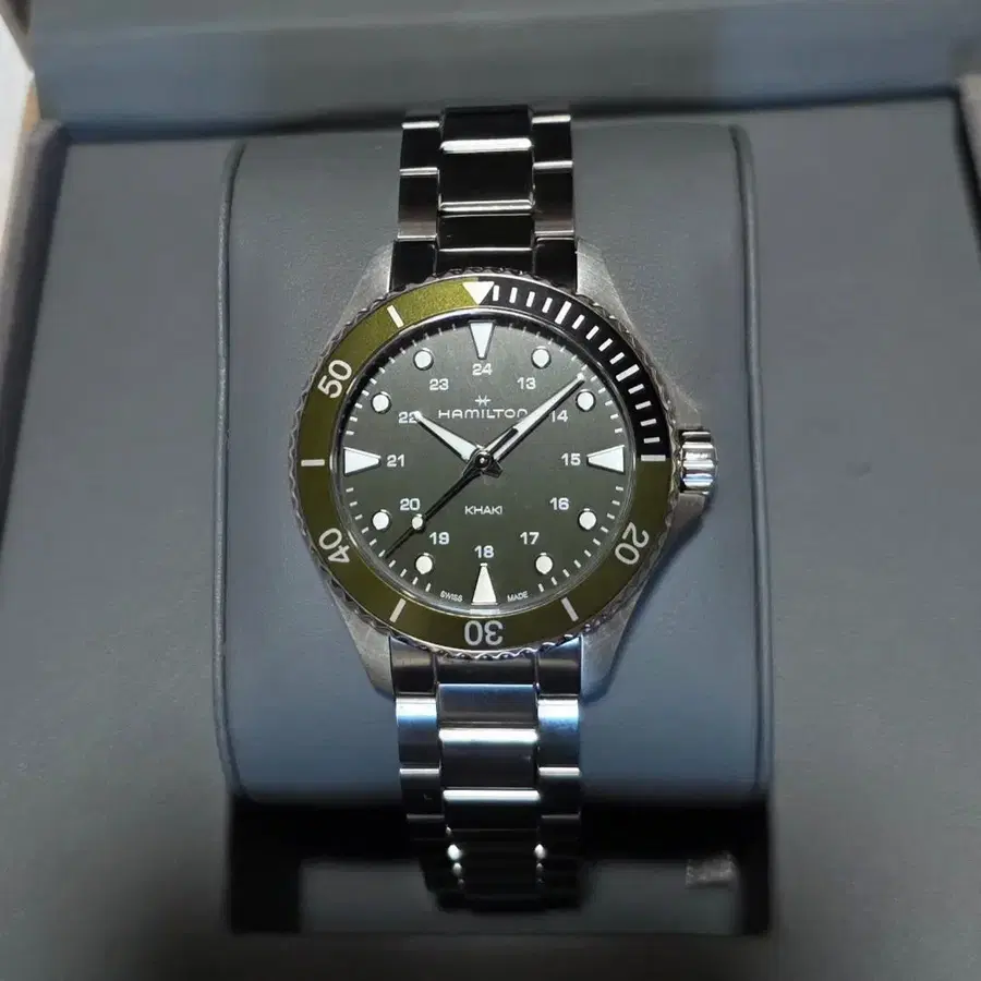[ 별주 블레스 ] 해밀턴 카키 네이비 스큐바 쿼츠 37mm 그린