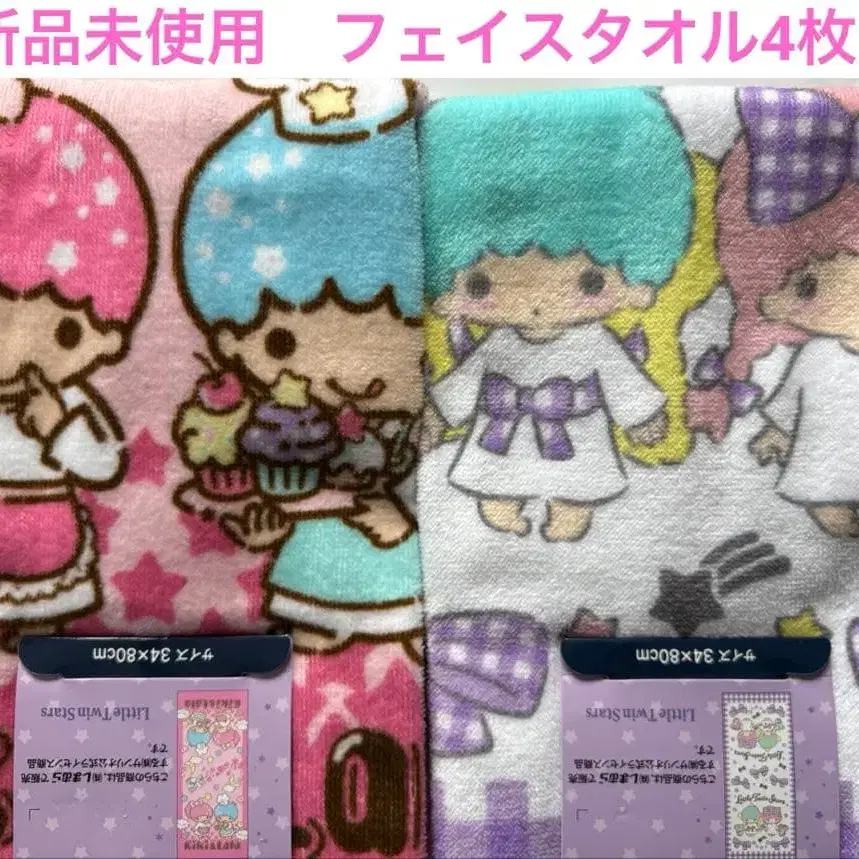 산리오 리틀트윈스타 페이스 타월 4장 세트 키키라라 미사용 새상품