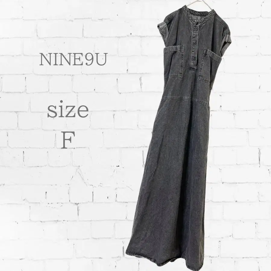NINE9U 슬리브리스 롱 원피스 블랙 데님 허리 리본