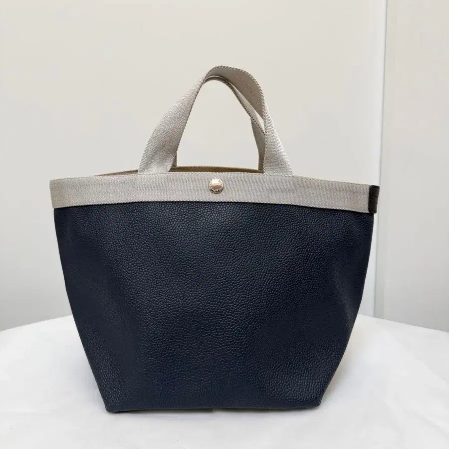 새상품급 에르베샤 펠리에 707GP 네이비 x 실버 럭스 보트형 토트 M