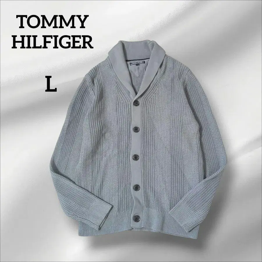 새상품급 타미힐피거 니트 가디건 긴팔 숄카라 그레이 L