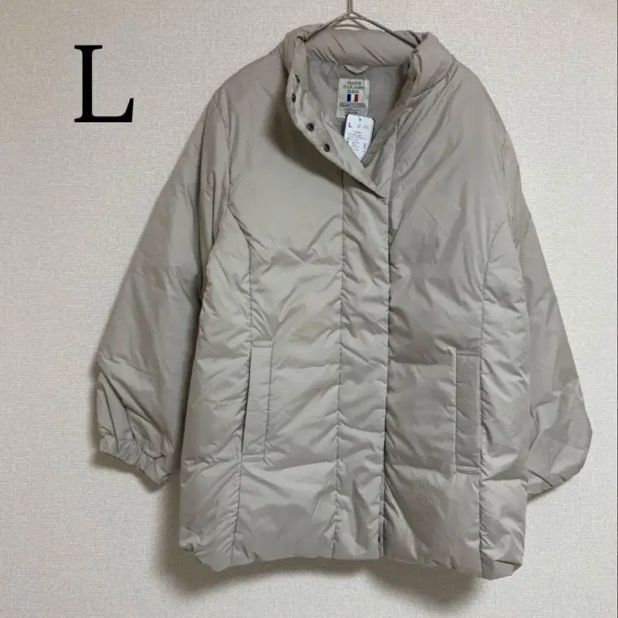 프렌치 덕 다운 자켓 L 아이보리 미들 기장 다운 코트 발수