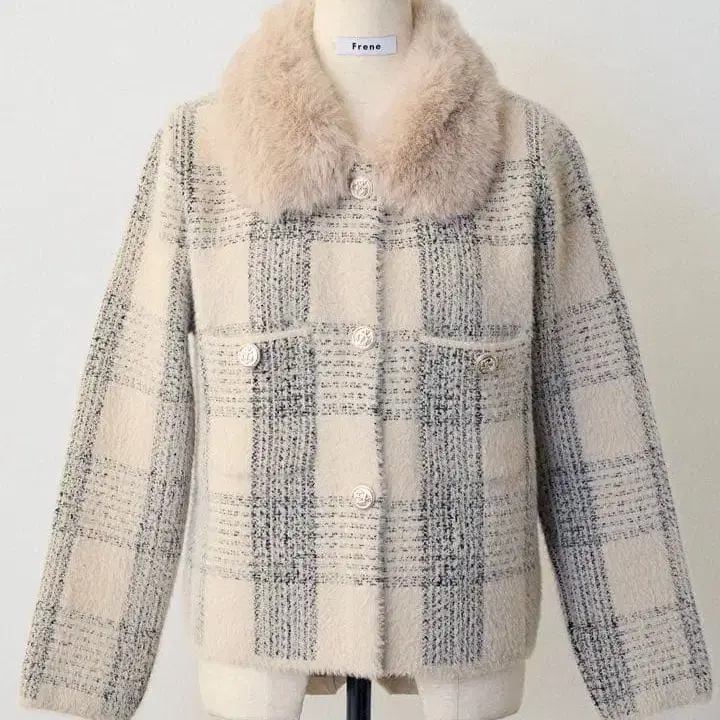체크 무늬 퍼 옷깃 코디 가디건 셀포드 프레이 아이디 좋아하시는 분께