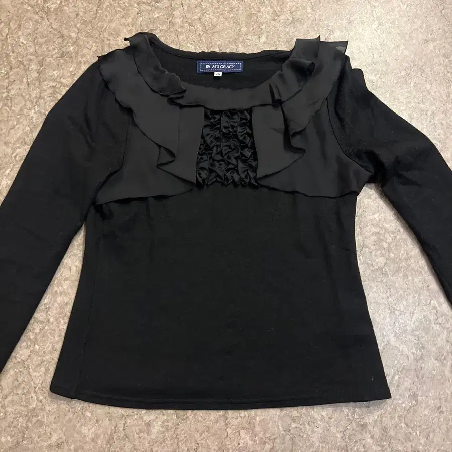 프릴 디자인의 블랙 니트, 사이즈 40. - 브랜드: M'S GRACY - 사이즈: 40 - 색상: 블랙 - 디자인: 프릴 포함 방문해 주셔서 감사합니다.
