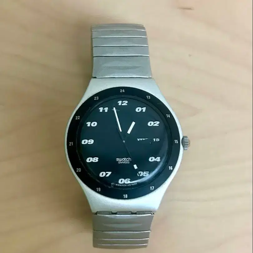 벨트 부분이 고무 (신축성 있는 소재)로 되어 있어 사용하기 편리한 심플하고 스타일리시한 Swatch 손목시계입니다.