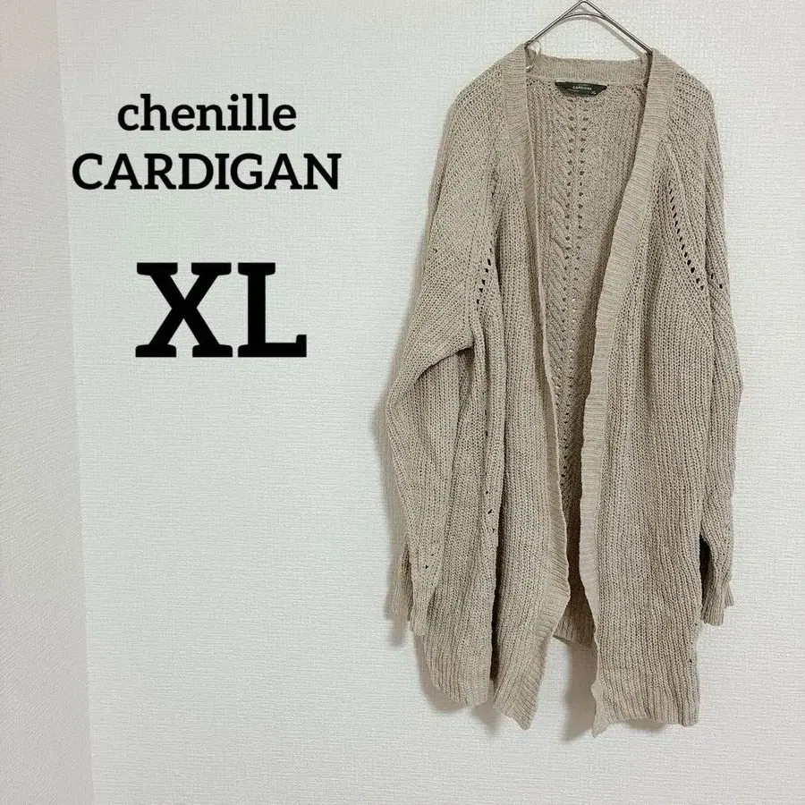 자동 번역되었어요. 원문보기베이지 오픈 프론트 가디건, 레이스 편직 디자인, XL 사이즈.