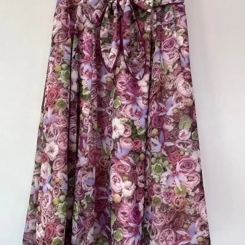 색상은 핑크이며 사이즈는 0, 허리의 리본은 탈부착 가능합니다.
