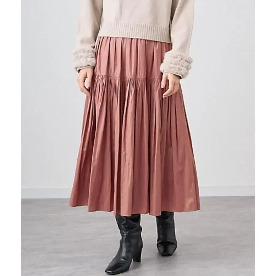 24AW 아나이 카센새틴 티어드 스커트 핑크 사이즈 38