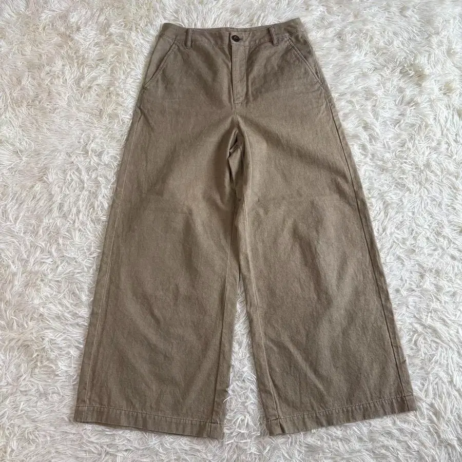 넉넉한 와이드 실루엣이 산뜻한 코튼 팬츠. 허리 부분은 지퍼와 버튼 사양이므로, 상의를 넣어 입는 코디에도 최적입니다. 손세탁 가능.