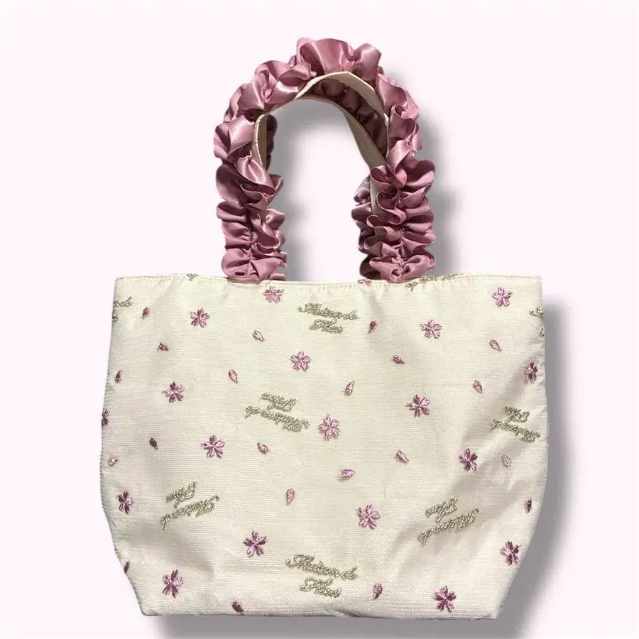 가벼운 튤에 벚꽃 자수를 흩뿌린 프릴 핸들 토트백은 골드 로고 자수도 품격 있게 어우러져 성숙/러블리한 디자인입니다 ♪.