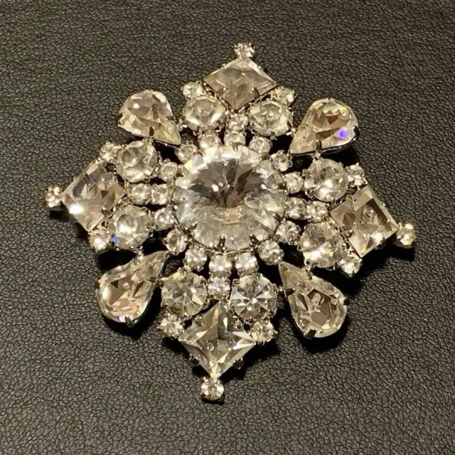 빈티지 클리어 큐빅 브로치 코스튬 주얼리