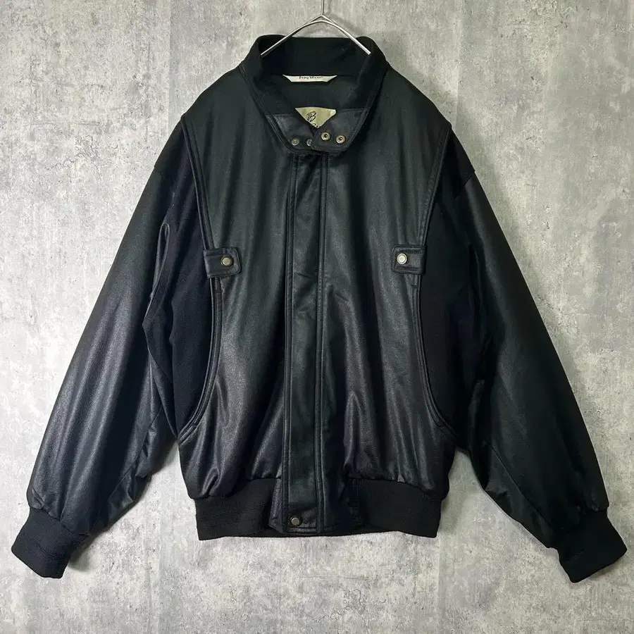 기믹 단장 자켓 블루종 올 블랙 이소재 절개 S