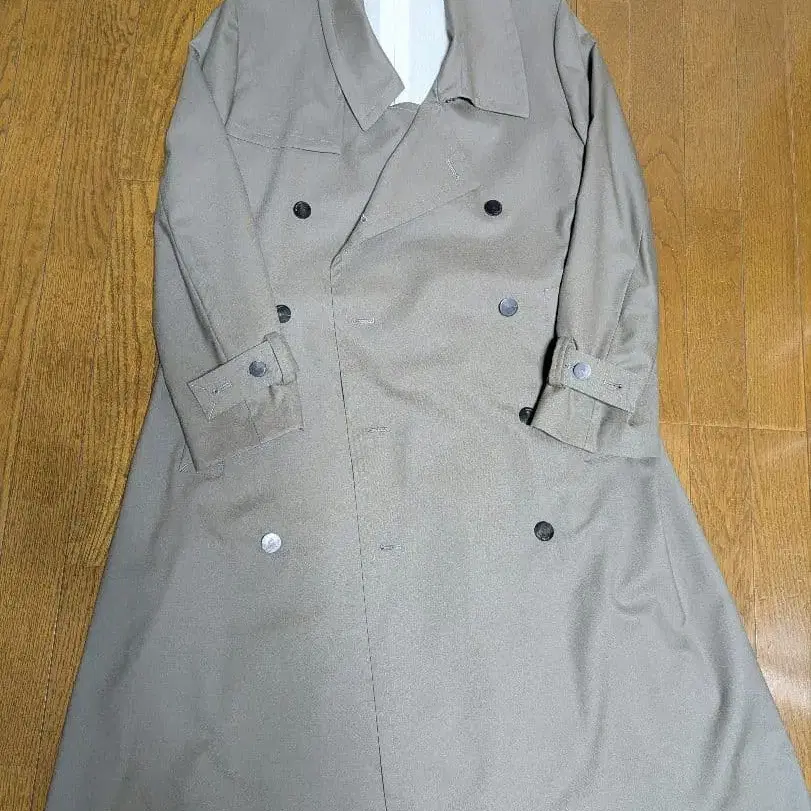 색상은 그레이지이며, 독특하고 절묘한 색감이 멋스럽습니다. 모던함과 클래식함을 넘나들며 연출할 수 있는 활용도 높은 코트로, 개인적으로는 뒷모습 실루엣이 아름다워 벨트를 조이지 않고 착용했습니다. 겉감 소재는 울이며 광택이 있어 고급스러우면서도 너무 섬세하지 않은 마감으로 부담 없이 착용할 수 있는 소재감입니다.