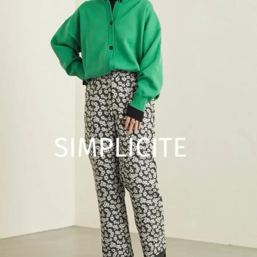 SIMPLICITE 자카드 턱 팬츠 꽃무늬 플라워 블랙 밴딩 와이드