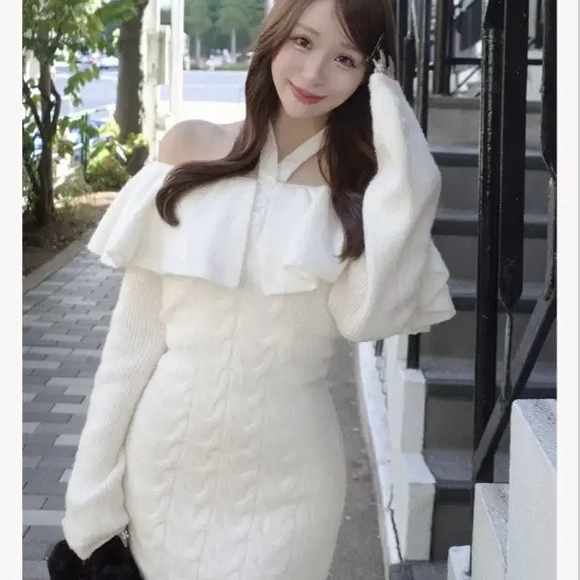 Darich 홀터넥 디자인 오프숄더 니트 미니 원피스