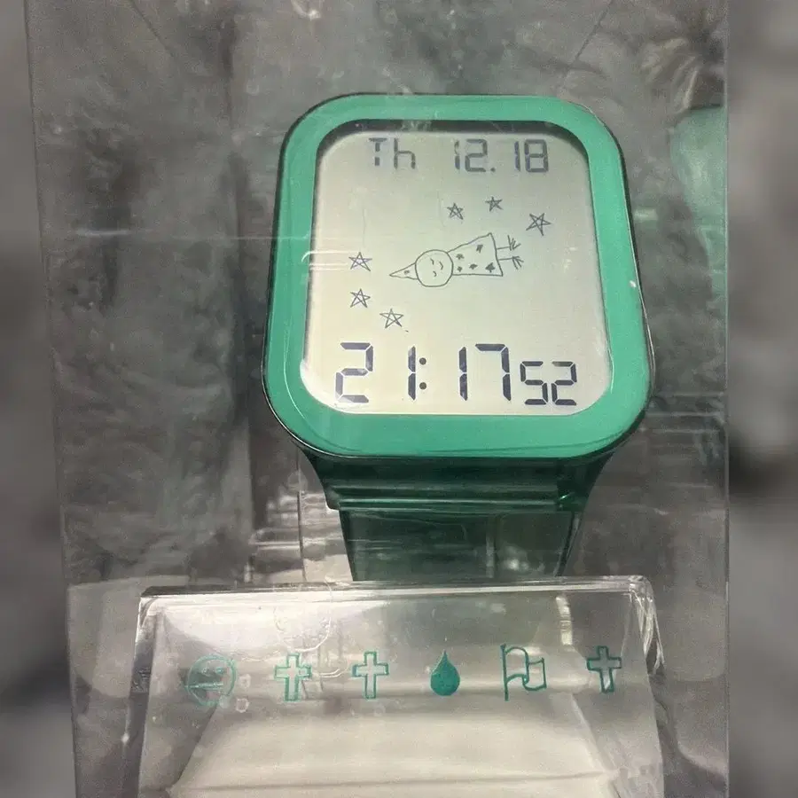 요네즈켄시 시계 투명 그린 컬러 디지털