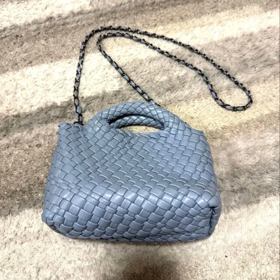 뜨개질 디자인이 특징적이며, 심플하면서도 멋스러운 인상을 주는 숄더백.