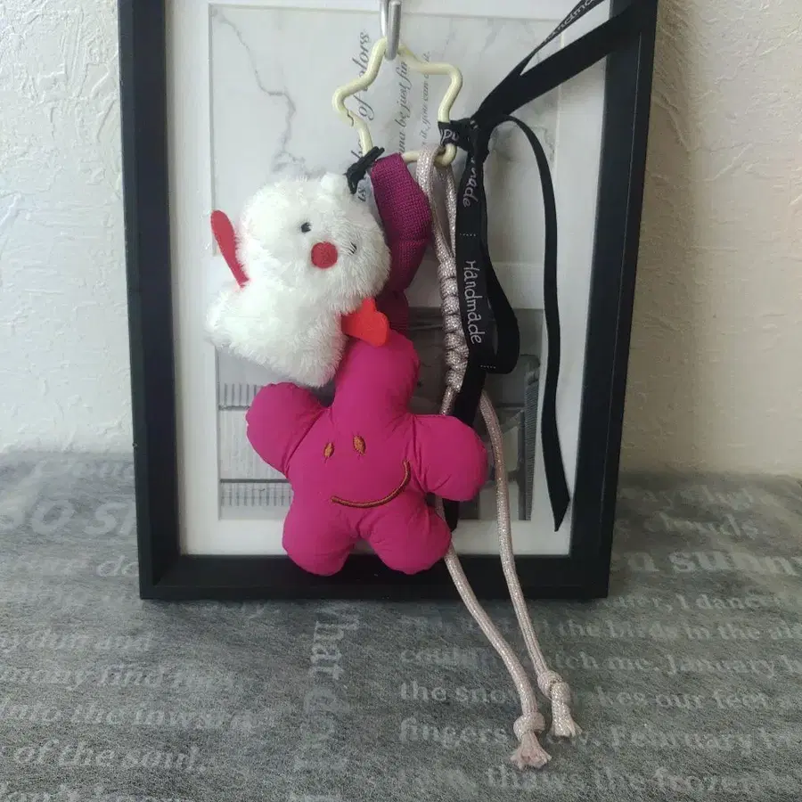 논논과 니코짱의 동그란 눈망울이 사랑스러워요//크림색 별 모양 카라비너로 묶여 있습니다 ☆ #퍼펫스ンスン#논논#논논 #백참#니코짱#스마일smile#스마일리#스트랩#리본 #리본#카라비너#별#스타#인기쟁이