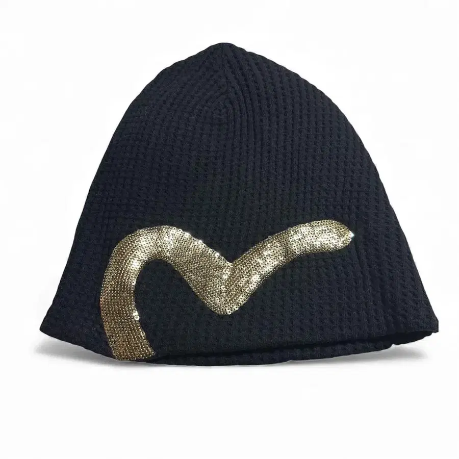 레어 EVISU 금 로고 스팽글 니트 모자 비니