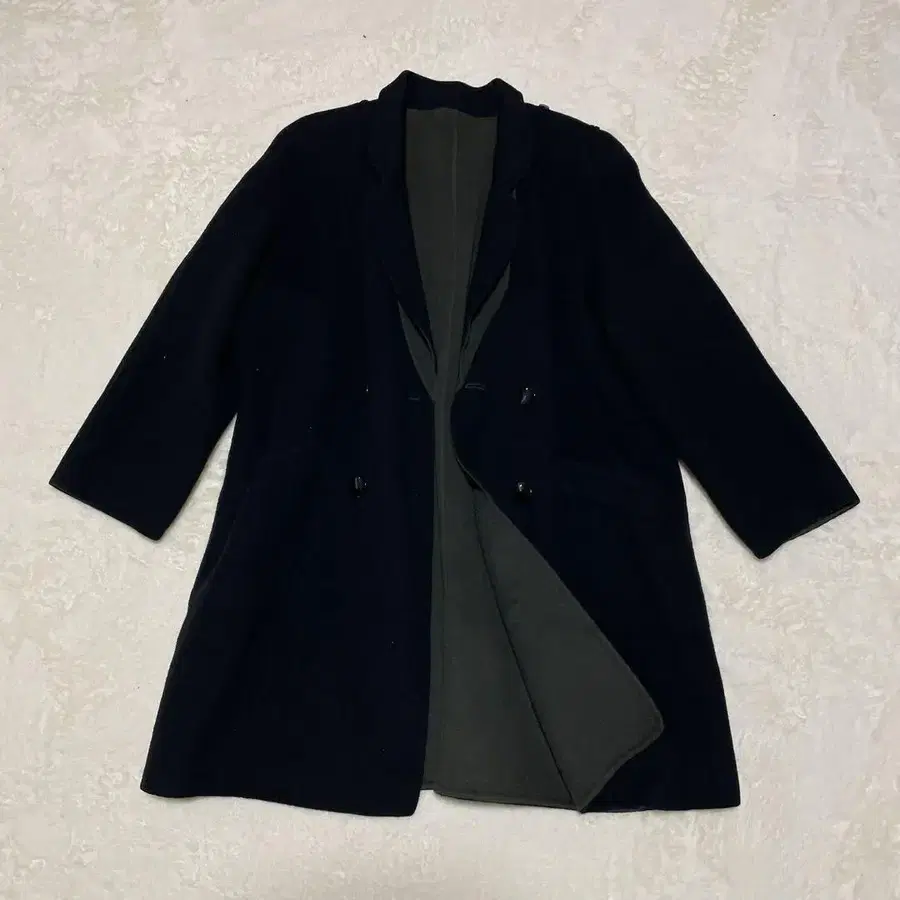 다크 네이비 더블 브레스트 체스터 코트 블랙 카키 리버서블