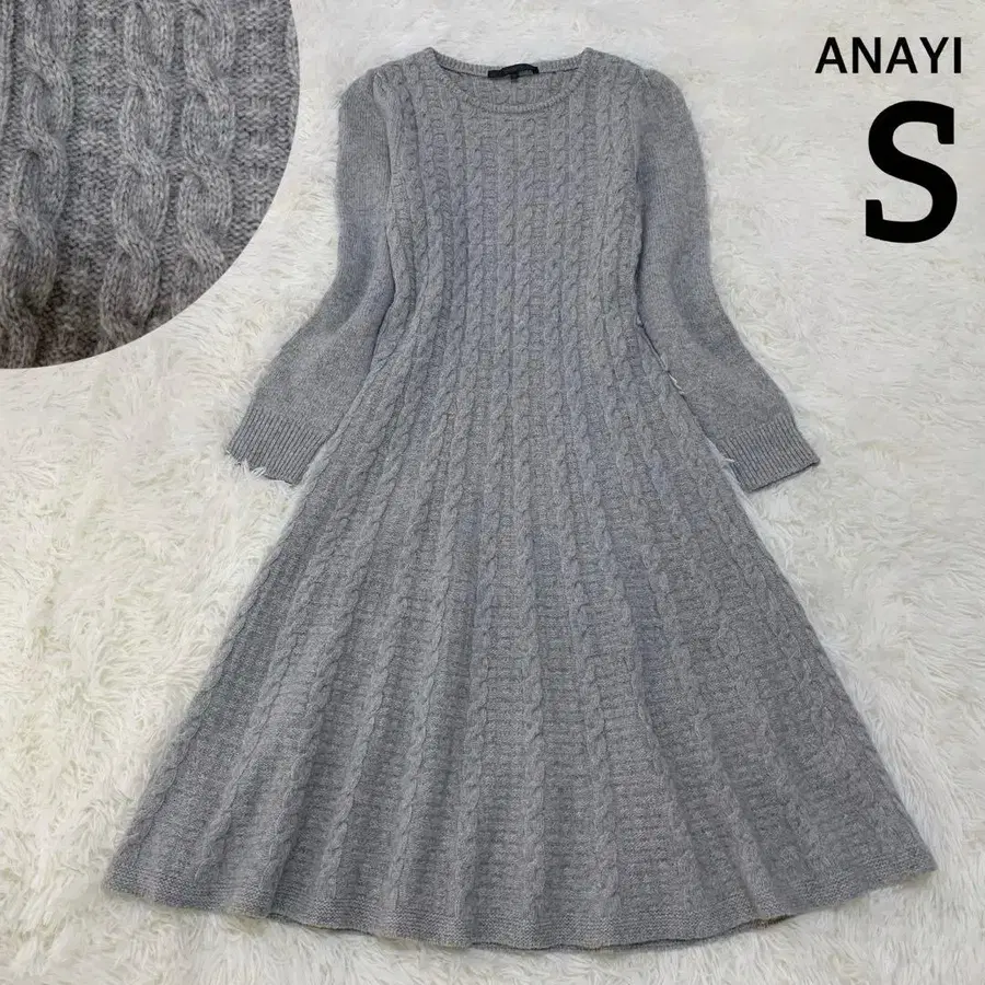 아나이 울 캐시미어 케이블 니트 원피스 플레어 퍼프 슬리브
