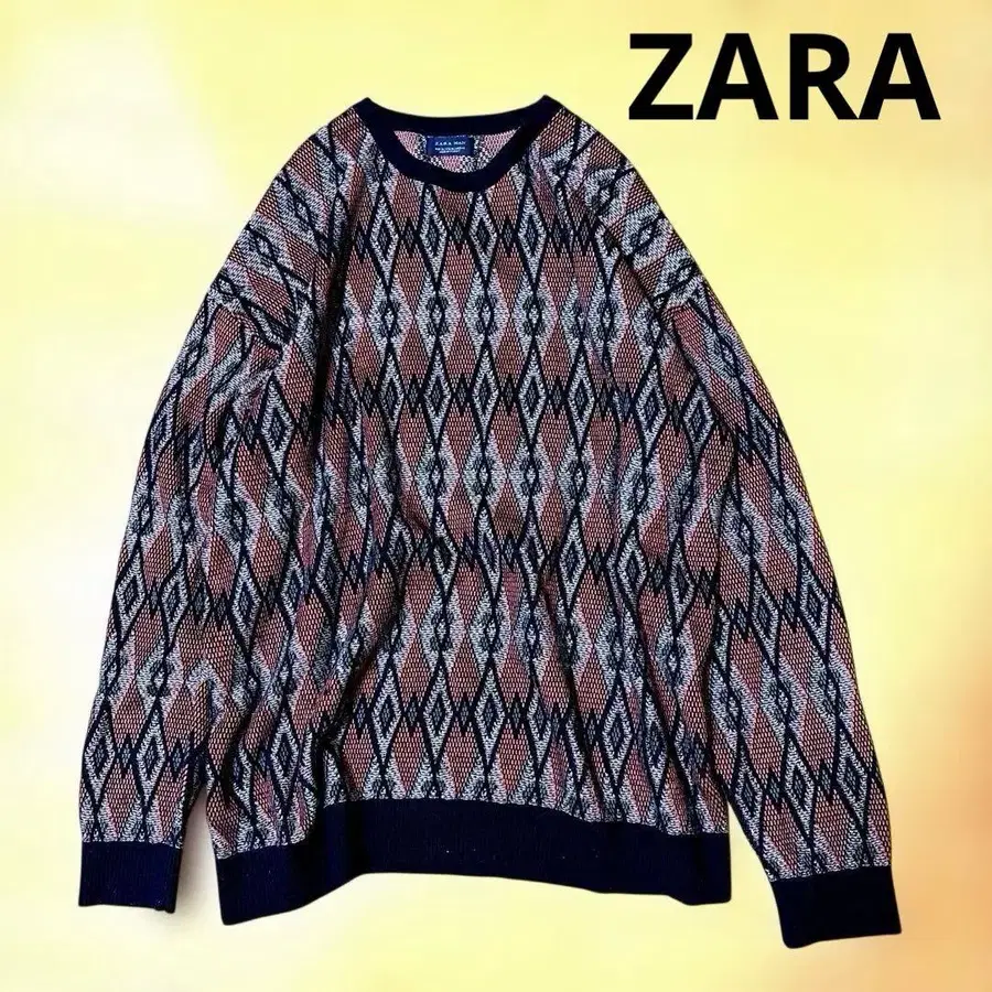 ZARA 자카드 니트 남성용 XL 지오메트릭 패턴 기하학 패턴