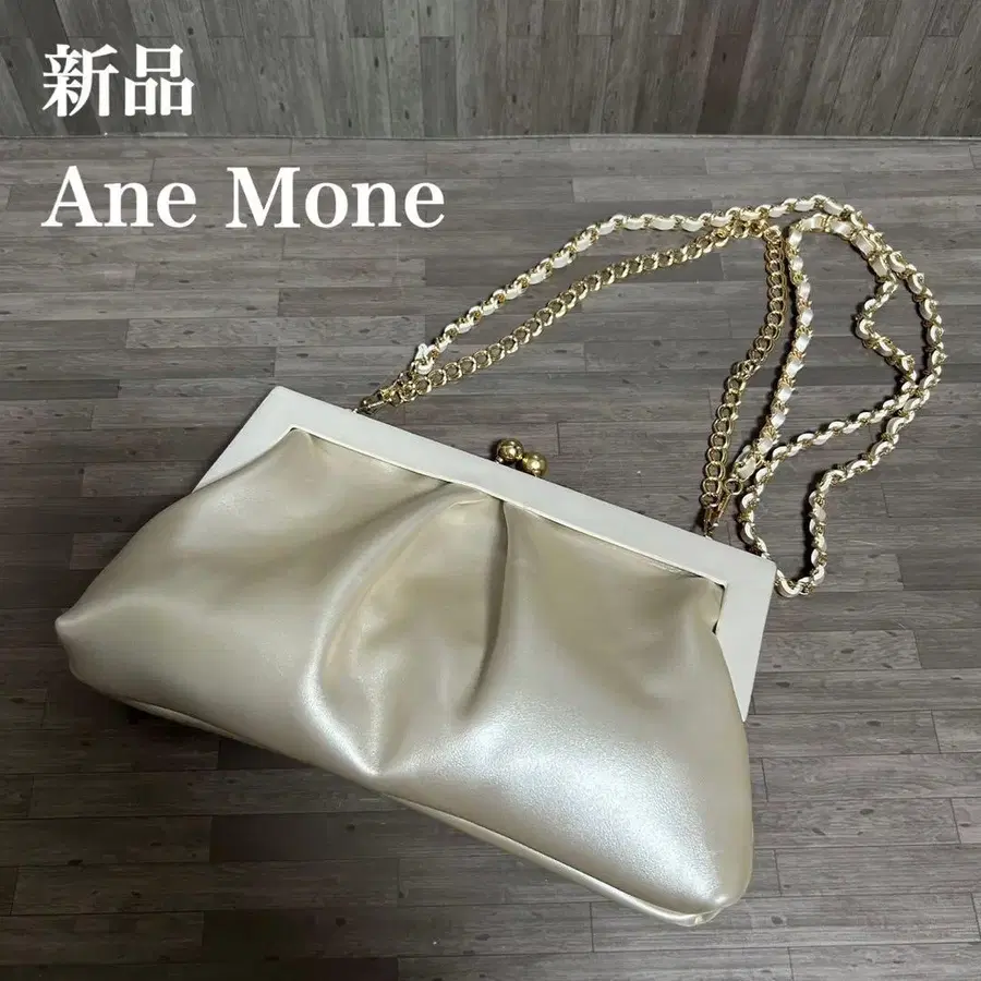 실버 색상의 합성 피혁 클러치백, 골드 체인이 달린 엘레강트한 디자인.