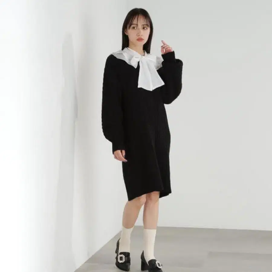 질 바이 질 스튜어트 리본 포함 블랙 니트 원피스