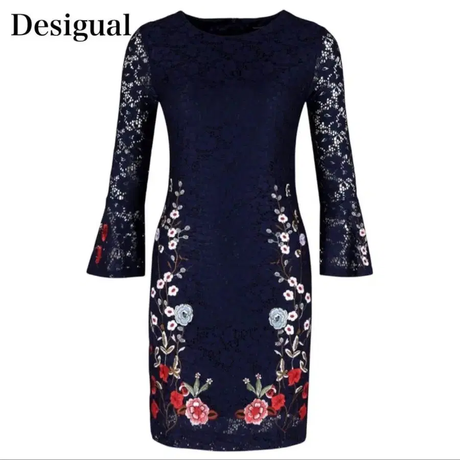 자동 번역되었어요. 원문보기**Desigual (데시구알)**의 네이비 컬러 레이스 소재 원피스입니다.