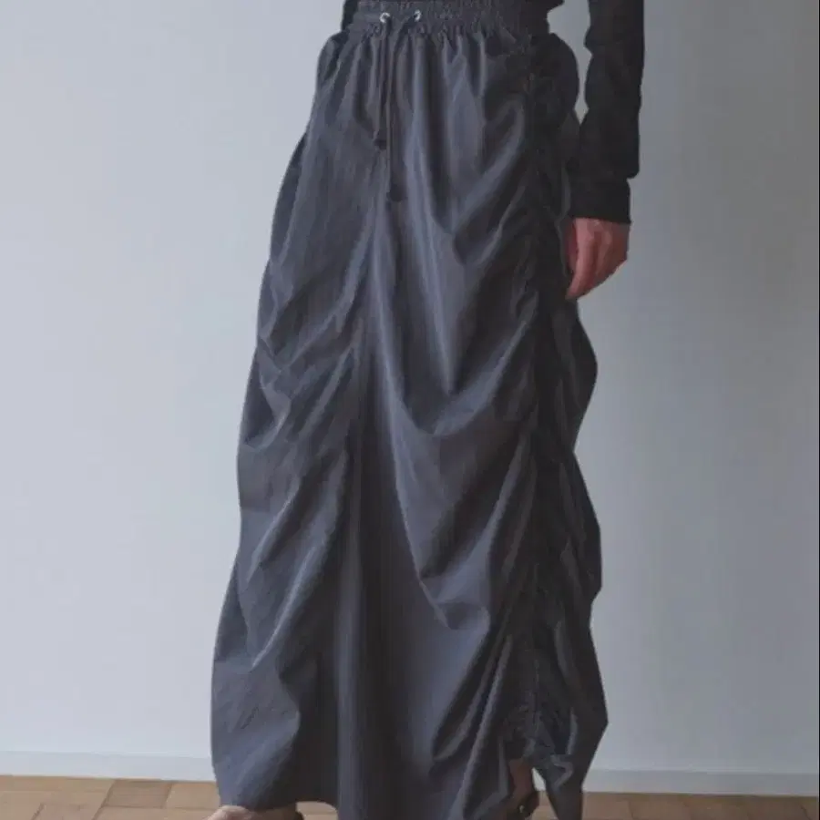 AIC. 사이드 라인 드로스트 나일론 롱 스커트