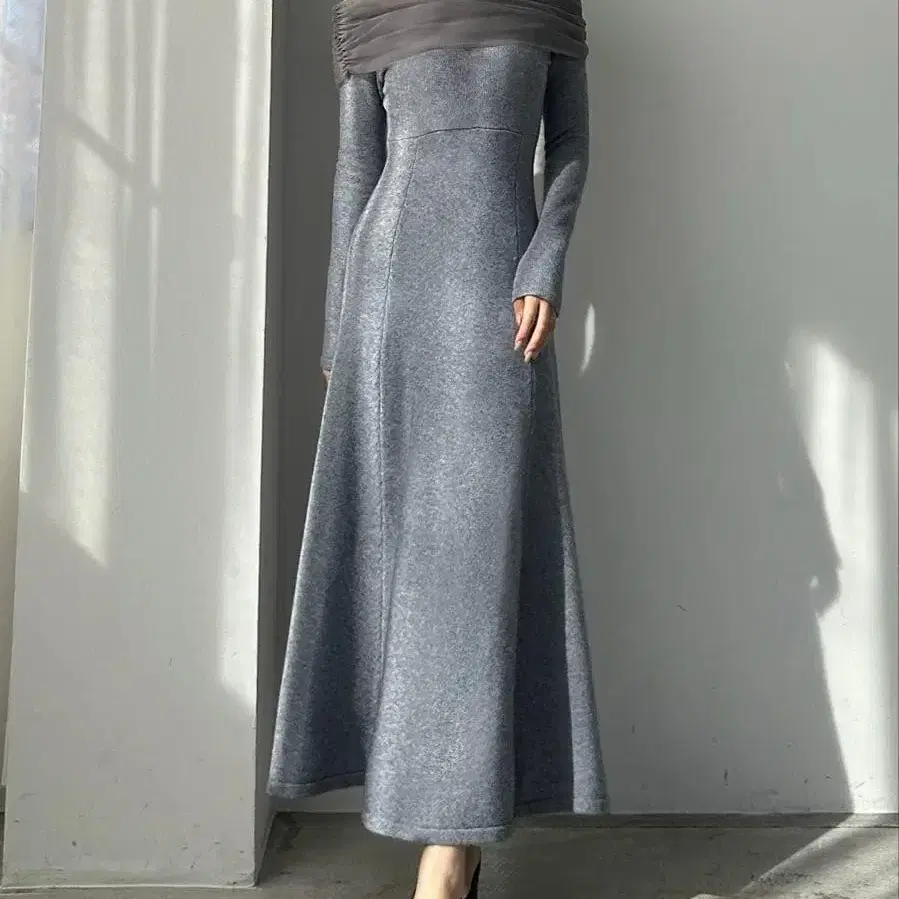 Louere 튤 오프숄더 플레어 니트 원피스 MT