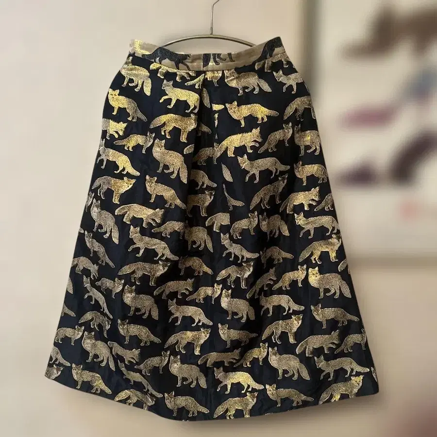 여우 자수 플레어 스커트 네이비 자카드 스커트 파티에도