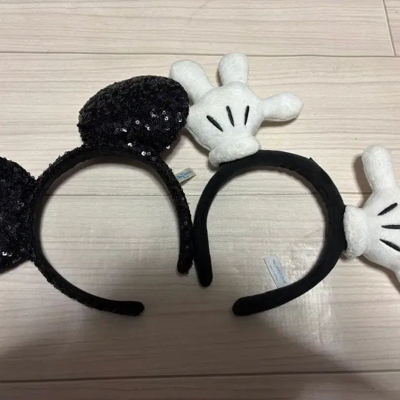 미키와 미니의 귀가 특징인 머리띠, 스팽글 장식 포함. - 디자인: 미키마우스와 미니 마우스 귀 머리띠 - 색상: 블랙과 화이트 - 소재: 펠트와 스팽글 - 특징: 스팽글 장식이 있는 미니 마우스 귀와 미키마우스 손 디자인 방문해 주셔서 감사합니다.