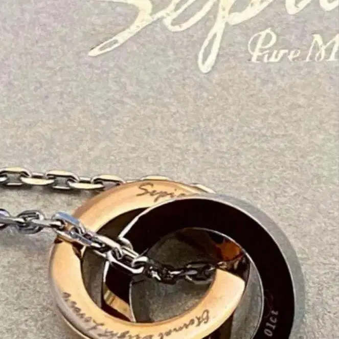 316L 스테인리스 스틸 소재의 다이아몬드 장식 이중 반지 디자인 목걸이. 심플하고 세련된 디자인. - 브랜드: Sepia - 소재: 316L 스테인리스 스틸 - 디자인: 이중 반지 - 각인: Pure Diamond - 색상: 실버, 골드 - 특징: 다이아몬드 장식 - 체인 타입: 링크 체인, 조정 가능 다양한 복장에 잘 어울리며, 데일리로 사용할 수 있는 질리지 않는 심플한 디자인. 디자인이 마음에 들어 구매했지만, 아쉽게도 한 번도 사용할 기회가 없었습니다. 사진은 빛의 영향으로 실제와 다르게 보일 수 있습니다. 미사용 새상품입니다. 자택 보관 중이었으므로, 신경 쓰이지 않는 분의 구매 부탁드립니다. 봐주셔서 감사합니다.