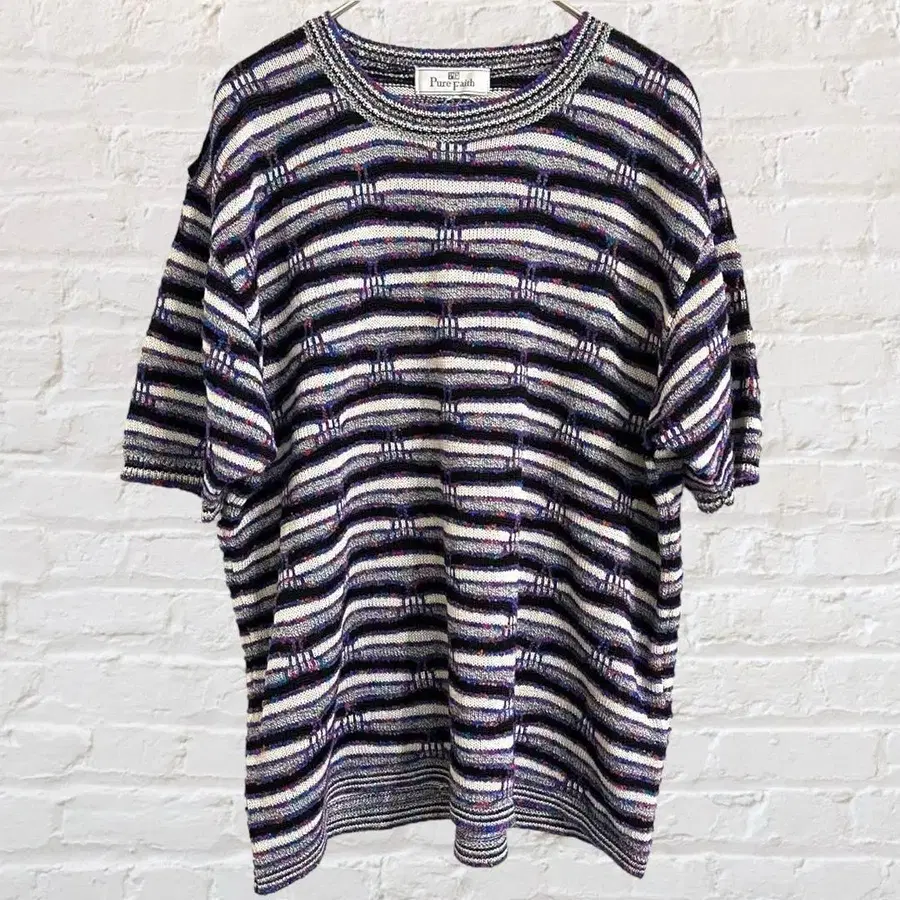 Pure Faith 썸머 니트 보더 라운드넥 목 소매 리브 신축