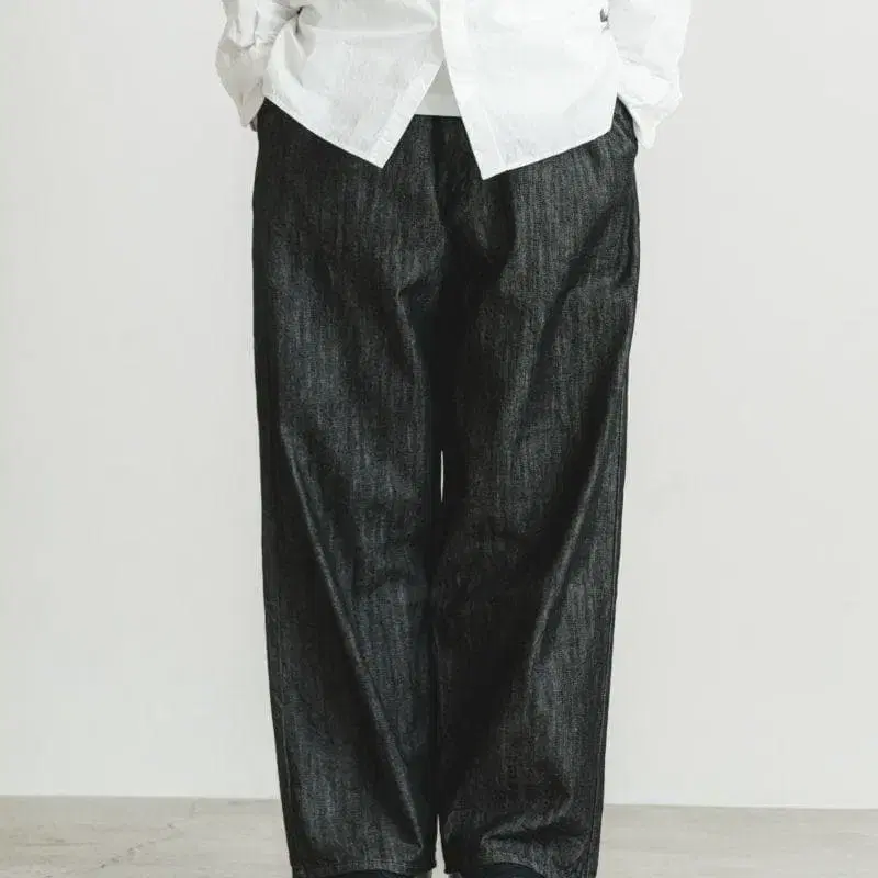 소재는 경사, 위사 모두 광택감이 있는 고급 실을 사용한 12oz 감축사 데님입니다. 두께감은 탄탄하면서도 느슨하게 짜서 부드러운 질감으로 완성되었습니다. 착용 초반에는 광택감이 있어 약간 깔끔한 인상을 주지만, 로프 염색의 인디고 경사, 또한 블랙은 황화 염색의 경사를 사용했기 때문에 데님다운 경년 변화도 즐길 수 있습니다.