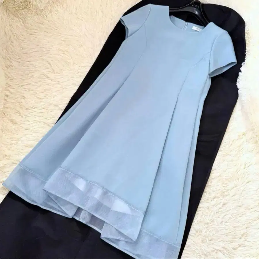 라이트 블루 색감과 풍성한 플레어 분량이 아가씨 같은 느낌을 더해주는 드레스입니다.