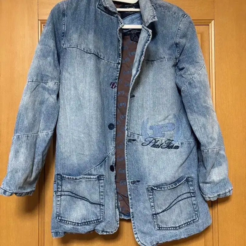 데님 자켓, 앞면에 2개의 포켓. - 색상: 데님 블루 - 스타일: 데님 자켓 - 디자인: 패치워크풍 디자인 자수가 귀여워 추천합니다. 버튼이 가운데만 다른데 구매 시부터 그랬습니다. 방문해 주셔서 감사합니다.