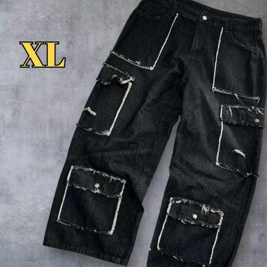 압도적인 존재감을 뽐내는 와이드 배기 실루엣의 카고 데님 팬츠입니다.